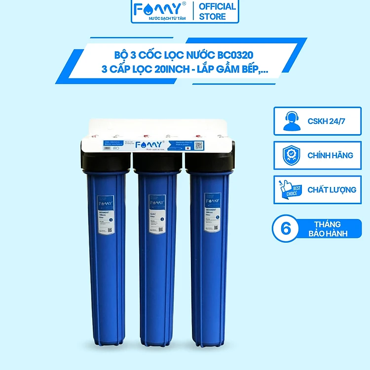 Bộ 3 Cốc Lọc Nước 20inch Dùng Cho Căn Hộ Chung Cư - Hàng Chính Hãng Famy Model BC0320