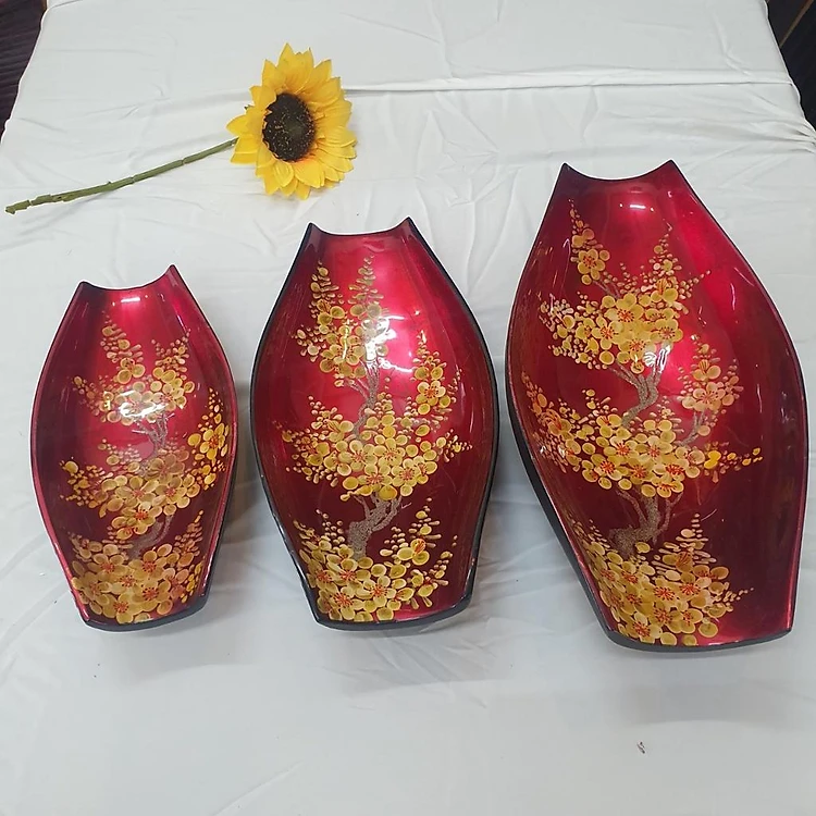 Bộ 3 dĩa chiếc thuyền sơn mài cao cấp Thanh Bình Lê đựng trái cây, trang trí nhà cửa, văn phòng, quà tặng dịp Lễ Tết