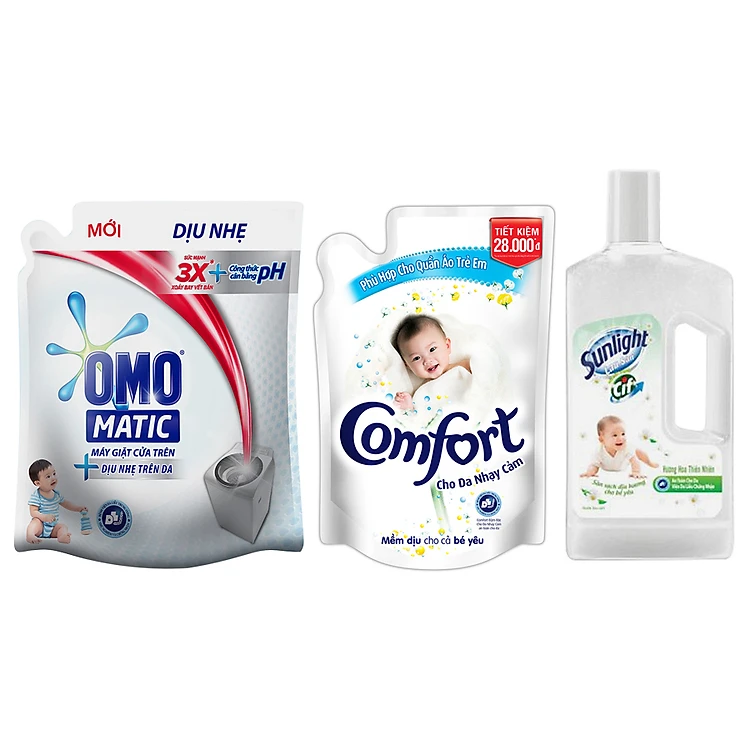 Bộ 3 Dịu Nhẹ Cho Da Nhạy Cảm OMO + Comfort + Sunlight (Nhỏ)