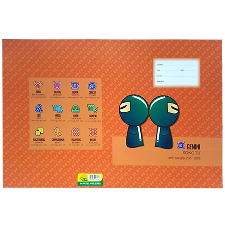 Giấy Bao Tập 12 Cung Hoàng Đạo - Cung Song Tử (10 tờ/xấp) được làm từ chất liệu giấy tốt, có tính thẩm mỹ cao. Thiết kế tiện lợi với nhãn tên đi kèm trên góc phải với đầy đủ thông tin Trường, Lớp, Tập, Tên, Năm học, giúp các em dễ dàng phân biệt môn học, tìm vở sẽ nhanh hơn, việc sắp xếp tập vở cũng khoa học hơn. Đặc biệt, sản phẩm sang trọng với màu sắc tươi sáng và hình ảnh cung song tử đáng yêu sẽ làm hài lòng các khách hàng nhí. Giấy Bao Tập mang lại cho các em nhiều hứng thú hơn trong học tập.