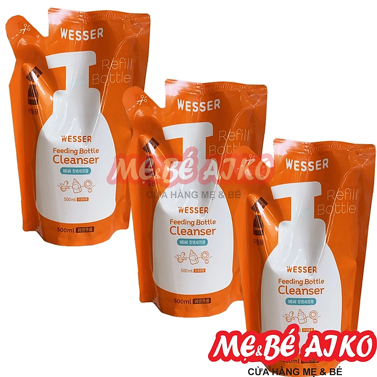 Bộ 3 Gói Nước Rửa Bình Sữa Wesser (500ml x 3)