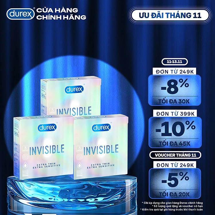 Bộ 3 hộp bao cao su Durex Invisible Extra Thin Extra Sensitive siêu mỏng, size 52mm, 3 bao/hộp