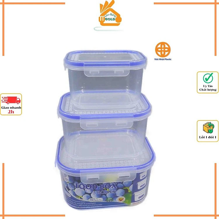Bộ 3 Hộp Đựng Thực Phẩm Cao Cấp Việt Nhật Mã 6532 Bảo Quản Thực Phẩm Trong Tủ Lạnh Nắp Đậy Có Ron Chống Tràn, Chống Đổ