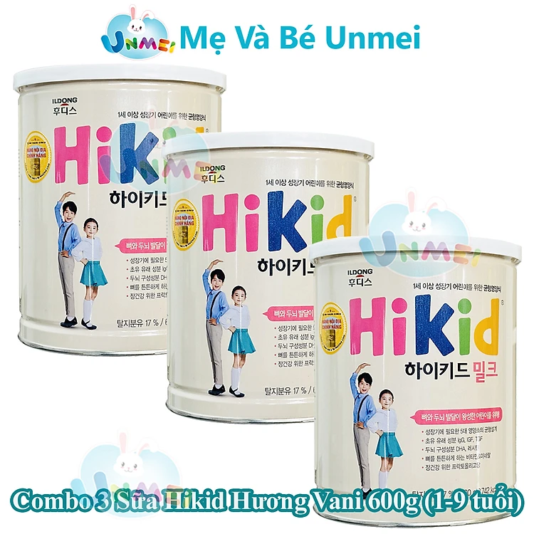 Bộ 3 Hộp Sữa HIKID tăng CHIỀU CAO & CÂN NẶNG 600g - Hàng Nội địa Hàn