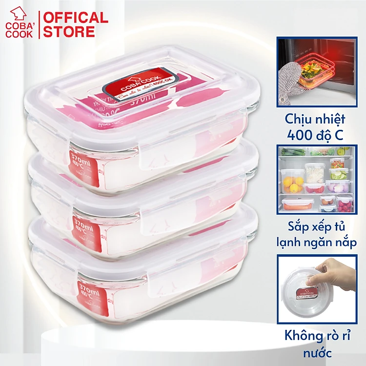 Bộ 3 hộp thủy tinh chịu nhiệt hình chữ nhật dung tích 370ml-CCL33