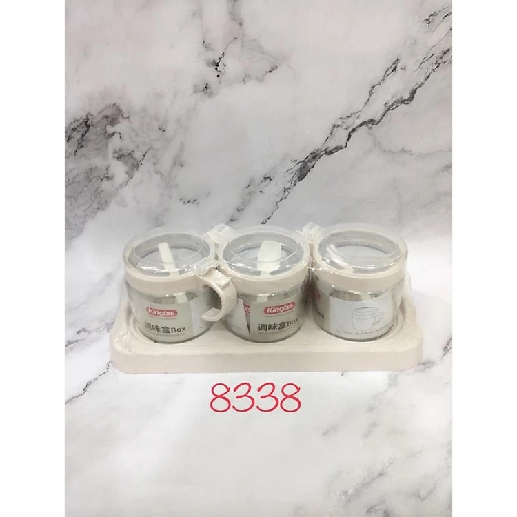 Bộ 3 hũ đựng gia vị thủy tinh Kinglxs cao cấp có khay ( giao ngẫu nhiên )