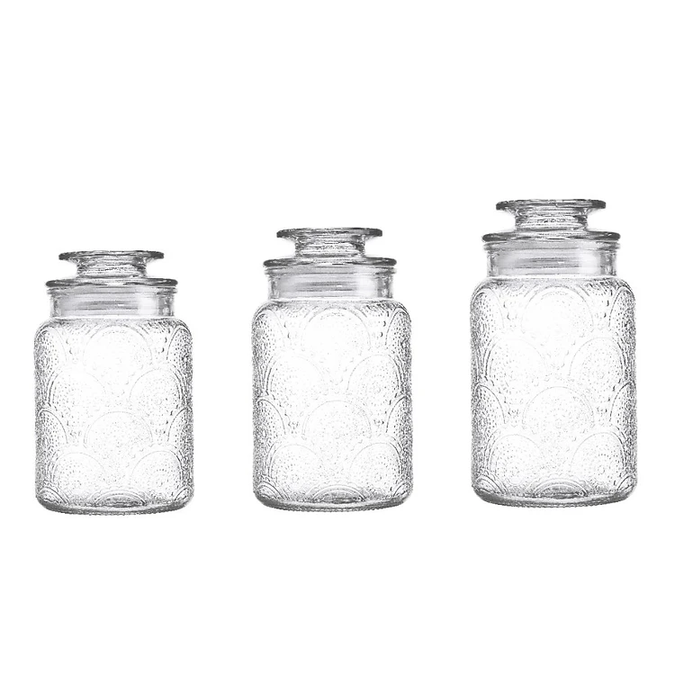 Bộ 3 Hũ Thủy Tinh Đựng Thực Phẩm Lê Bên Làng LBL1210, Nắp Kín, Hoa Văn, Dung Tích 1L, 1.3L, 1.5L