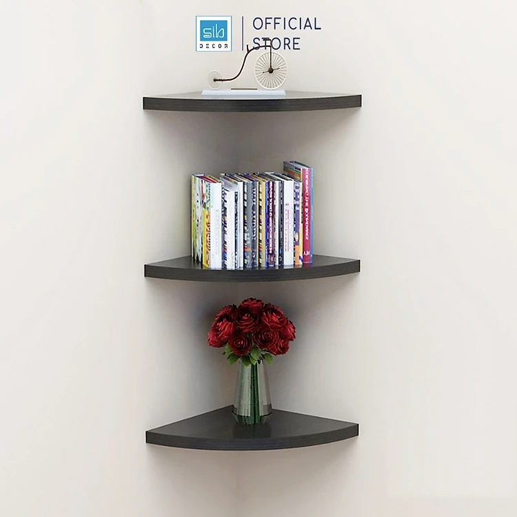 Kệ góc tiết kiệm diện tích và tận dụng góc phòng.