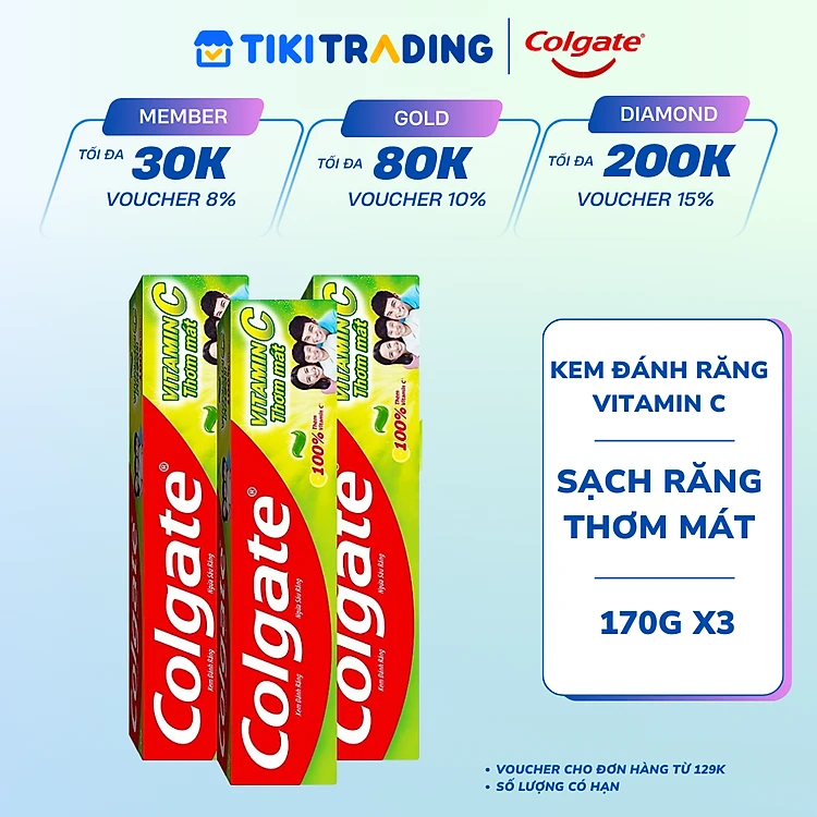 Bộ 3 Kem đánh răng Colgate Vitamin C thơm mát 170g/ tuýp