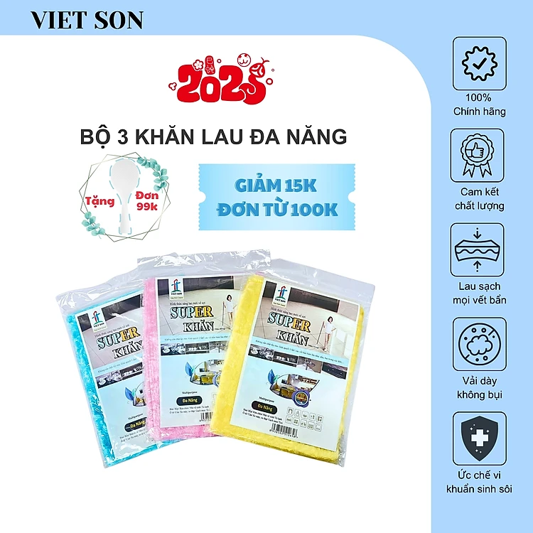 Bộ 3 Khăn Lau Bếp VIETSON Đánh Bay Mọi Vết Bẩn
