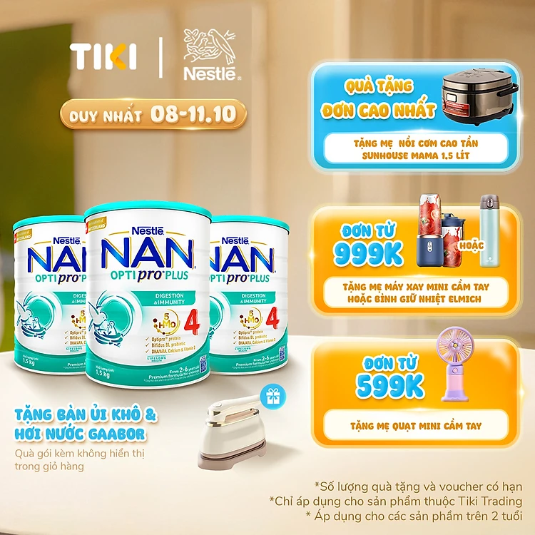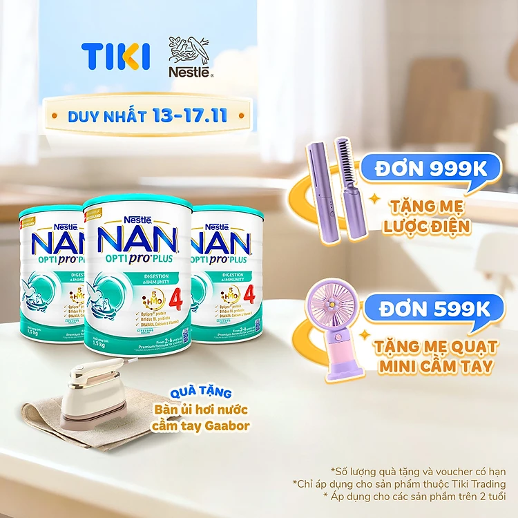 Bộ 3 lon Sữa bột NAN OPTIPRO PLUS 4 Nestle Bé 2-6 tuổi 1500g/lon Giúp tiêu hóa tốt