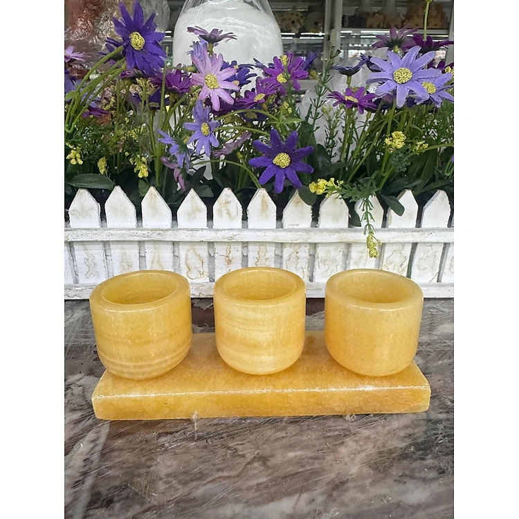 Bộ 3 ly nước, chung nước thờ cúng đá ngọc