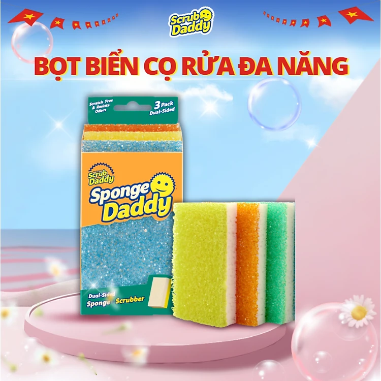 Bộ 3 Miếng Chùi Rửa Bọt Biển Đa Năng Sponge Daddy - Màu ngẫu nhiên