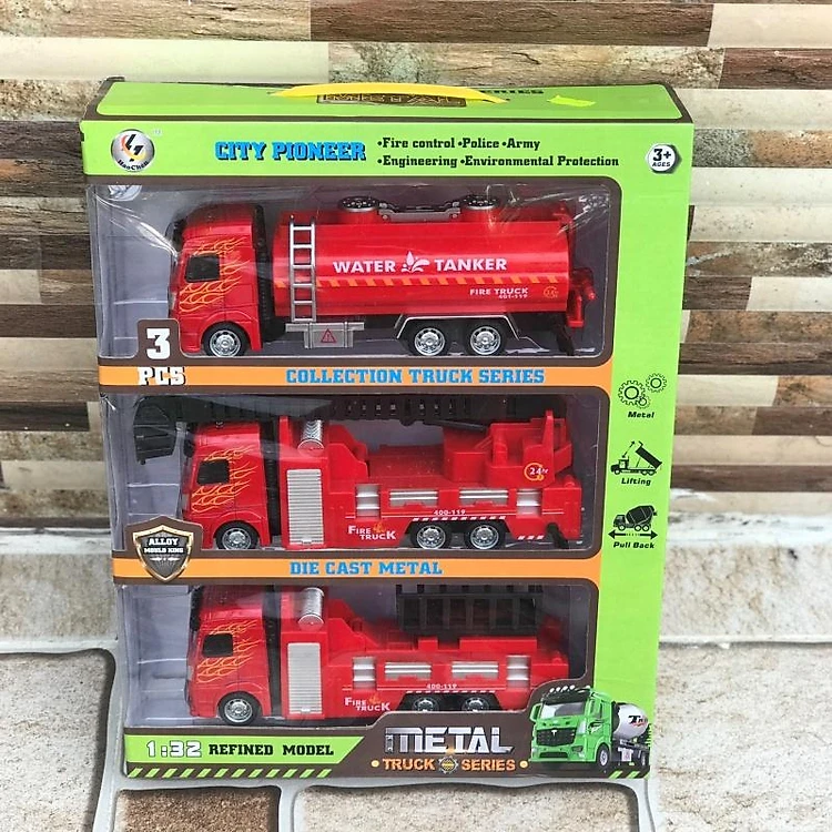 Bộ 3 Mô hình xe cứu hỏa, đồ chơi xe ô tô cho bé