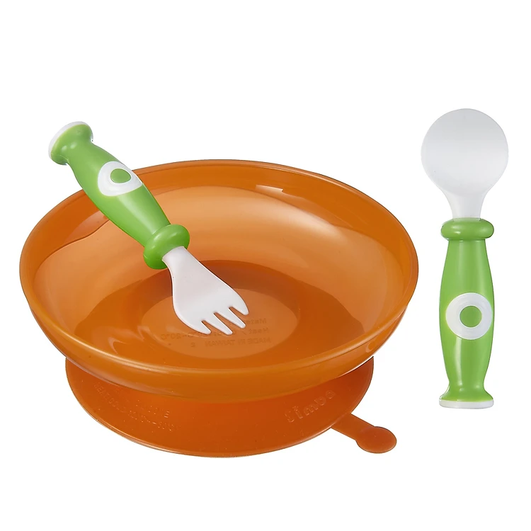 - Sản phẩm có sự kết hợp các màu sắc nổi bật như cam, xanh lá non và trắng sẽ kích thích thị giác giúp bé thêm thích thú khi tập ăn.
