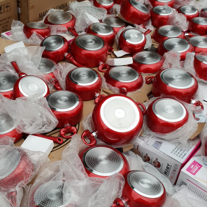 Bộ 3 nồi 1 chảo hợp kim nhôm Homy mang sắc thái đỏ tươi làm cho không gian nhà bếp thêm sang trọng và nổi bật