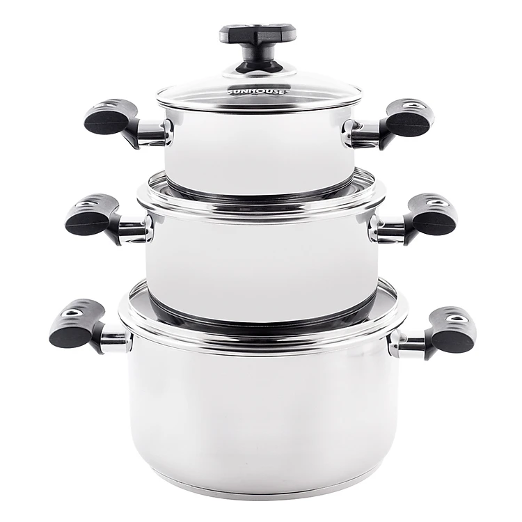 Bộ 3 Nồi Inox 3 Đáy Vung Kính Bếp Từ Sunhouse SH889 (16cm, 20cm, 24cm)