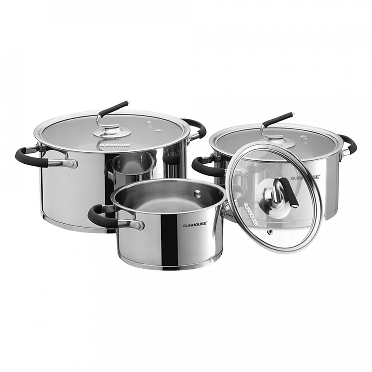 Bộ 3 Nồi Inox 5 Đáy Vung Kính Bếp Từ Sunhouse SH891 (16cm, 20cm, 24cm)