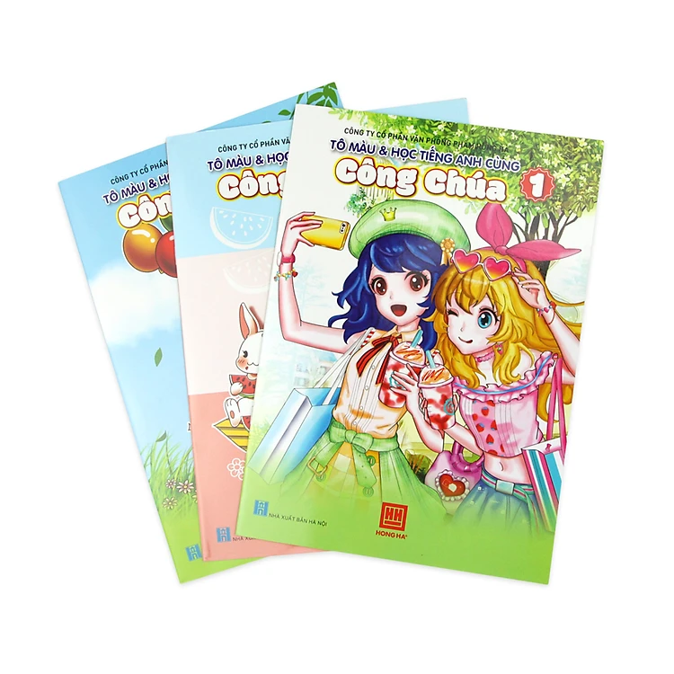 Bộ 3 quyển vở tô màu và học tiếng anh cùng công chúa Hồng Hà - Quyển 1, 2, 3