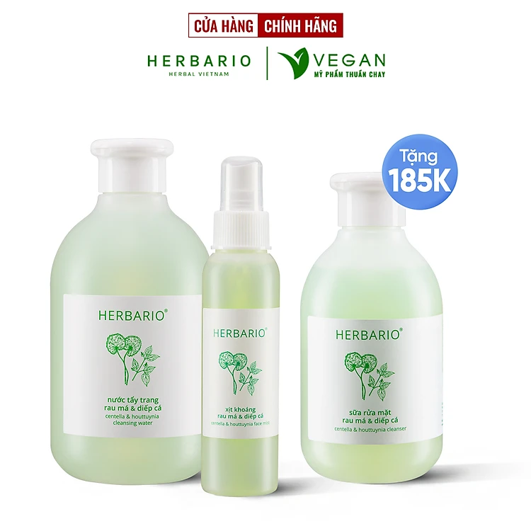 Bộ 3 rau má và diếp cá Herbario chăm sóc da mụn: Nước tẩy trang 300ml + Sữa rửa măt 200ml + Xịt khoáng 100ml