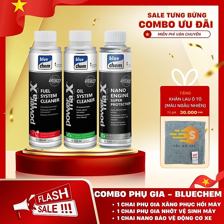 Bộ 3 Sản Phẩm Bluechem Làm Sạch Và Bảo Dưỡng Động Cơ Ô tô Xăng (3 x 250ml)