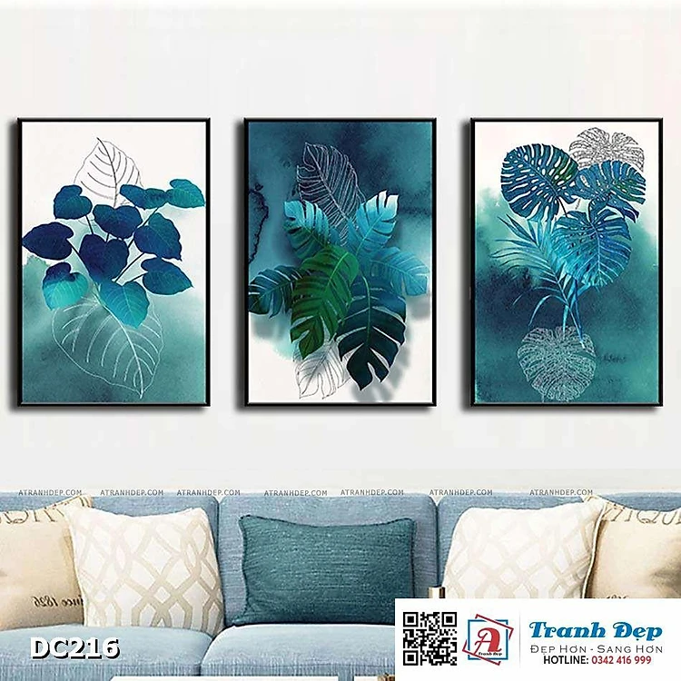 Bộ 3 tranh canvas treo tường Decor Họa tiết lá xanh - DC216