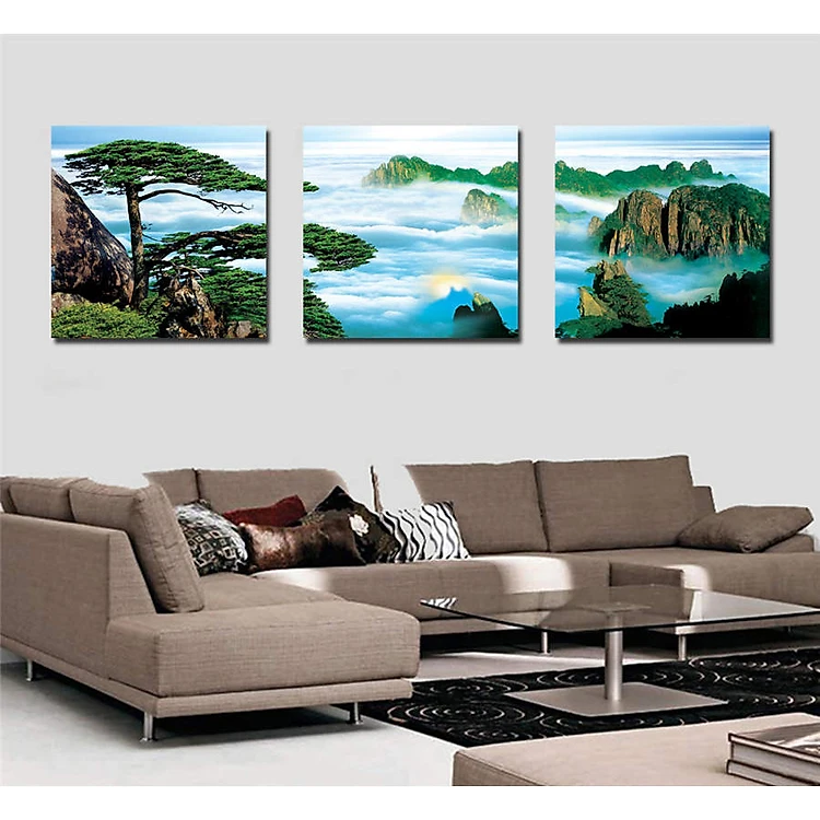Bộ 3 tranh SƠN THỦY HỮU TÌNH,, XANH MÁT, RƯỚC TÀI LỘC , Tranh treo tường trang trí phòng ăn, Phòng khách, tặng kèm khung tranh composite PVP-DC35