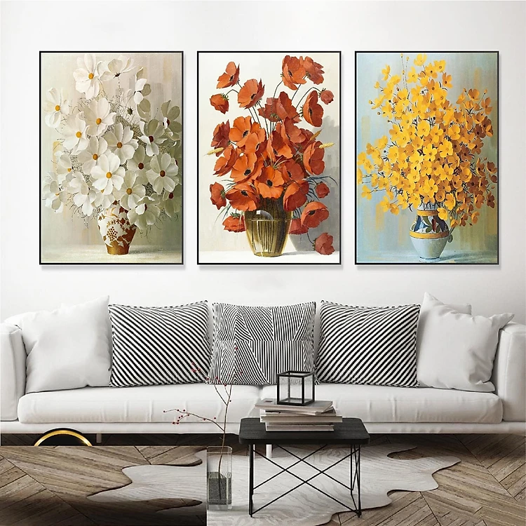 Bộ 3 tranh treo tường trên nền canvas hoa đẹp trang trí phòng khách và phòng ngủ nhiều kích cỡ Tipo_0307_SS