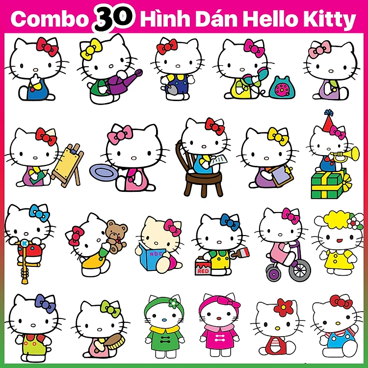 Bộ 30 Hình Dán Sticker Mèo Hello Kitty Dễ Thương Dán Xe Máy, Nón Bảo Hiểm, Laptop (Cắt sẵn, chống thấm nước)