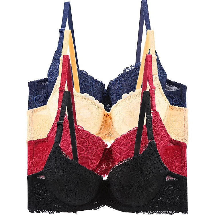 Bộ 4 Áo Ngực Cao Cấp Nữ Mignon Ren Mút Dày AN074 - Màu Ngẫu Nhiên