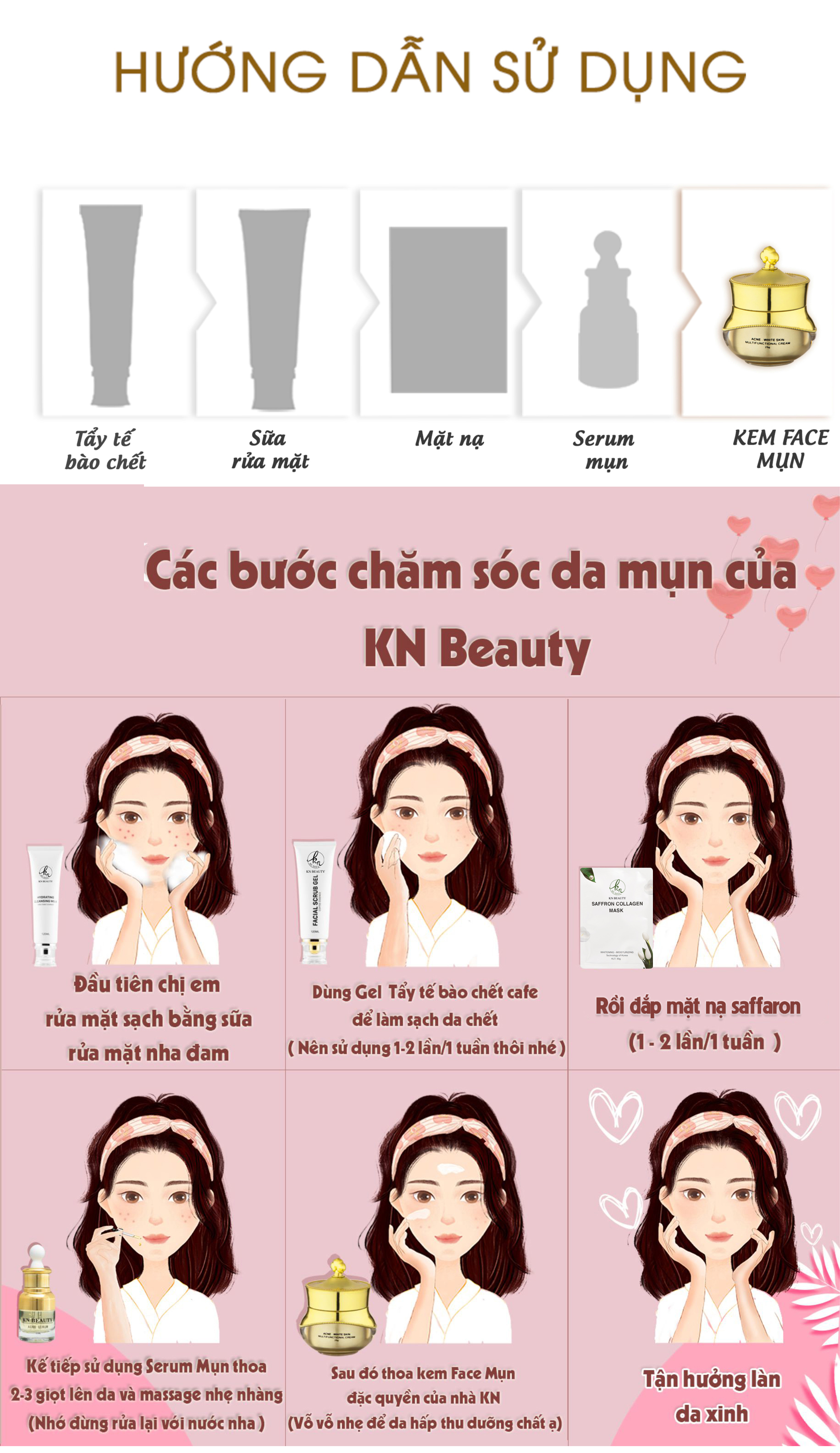 Sử dụng kết hợp với kem mụn KN Beauty để đạt kết quả tối ưu.