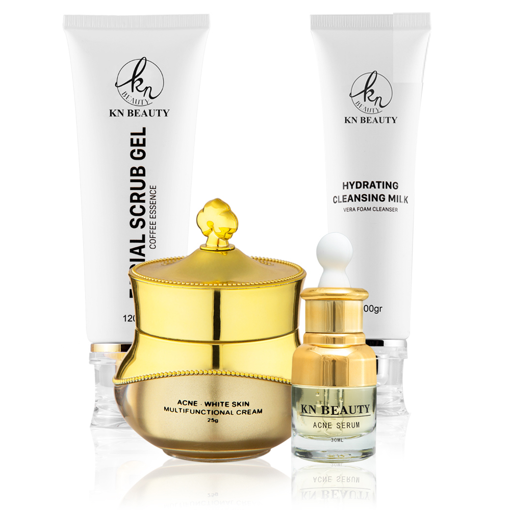 Bộ 4 Bước Chăm Sóc Trắng Da Ngừa Mụn KN Beauty Chuyên Sâu: Kem Dưỡng 25g + Serum 30ml+ Sữa Rửa Mặt 100gr+ Tẩy Tế Bào Chết 120ml