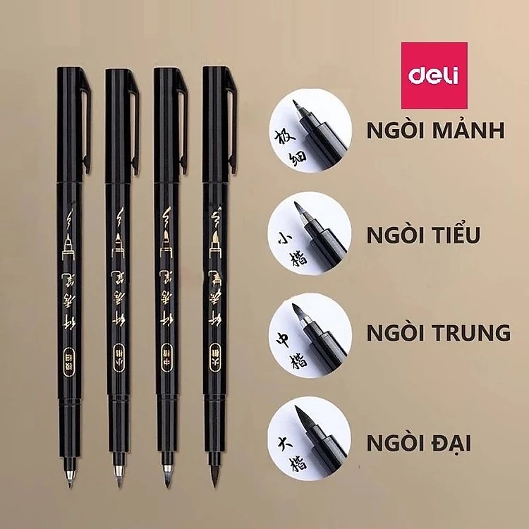 Bộ 4 bút viết thư pháp chữ Hán Calligraphy Deli 75514 / 75515 / 75516 có thể đổ thêm mực