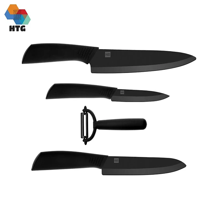 Bộ 4 dao nhiệt gốm Huohou HU0010 công nghệ nano chống dính, cắt lát thịt cá, trái cây, hoa quả, rau củ, hàng chính hãng