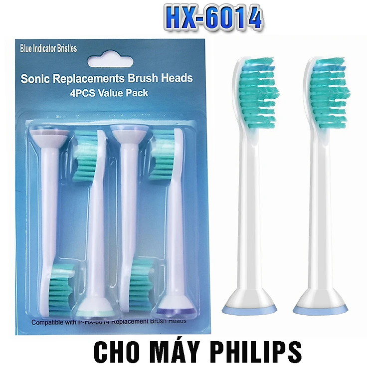 Cho máy Philips Sonicare, Bộ 4 đầu bàn chải đánh răng điện HX-6014, dòng máy HX3, HX6, HX7, HX8, HX9, R, FlexCare +, FlexCare, HealthyWhite, HydroClean, EasyClean, DiamondClean-Phá tan mảng bám, cho răng sáng bóng