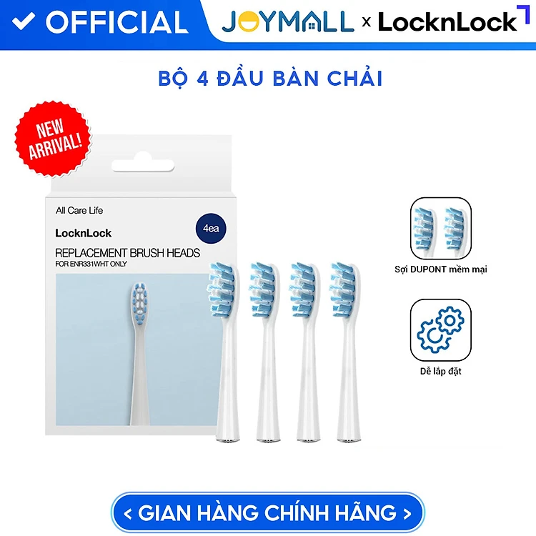 Bộ 4 đầu bàn chải thay thế ENR331WHT_RB, Hàng chính hãng, dùng cho bàn chải ENR331WHT, màu trắng - JoyMall