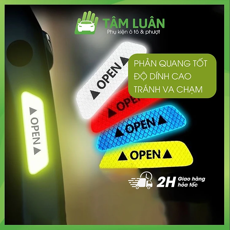 Bộ 4 Decal phản quang OPEN dán cửa oto cảnh báo an toàn, chống va chạm TÂM LUÂN Chổi lau tẩm dầu - Hàng chính hãng