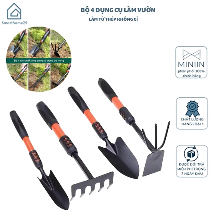 Bộ 4 Dụng Cụ Làm Vườn Mini Thép Sơn Tĩnh Điện Bền Đẹp – Xẻng Cào Cuốc 2 Đầu Tay Cầm Bọc Cao Su Chống Trượt – Dụng Cụ Trồng Hoa Rau Cây Cảnh, Đào Xới Đất Chăm Sóc Vườn Tại Nhà - HÀNG CHINH HÃNG MINIIN