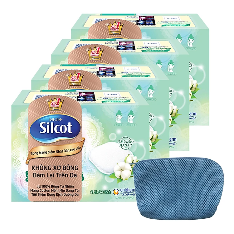 - Bộ 4 Hộp Bông Trang Điểm Silcot Premium (66 Miếng/Hộp) - Tặng Túi Đựng Đồ Đa Năng Màu Ngẫu Nhiên là sản phẩm chăm sóc da cao cấp bán chạy số 1 Nhật Bản trong hơn 10 năm liền. Được làm từ 100% sợi bông tự nhiên, bông trang điểm mềm xốp, êm ái và vô cùng dịu nhẹ với da.