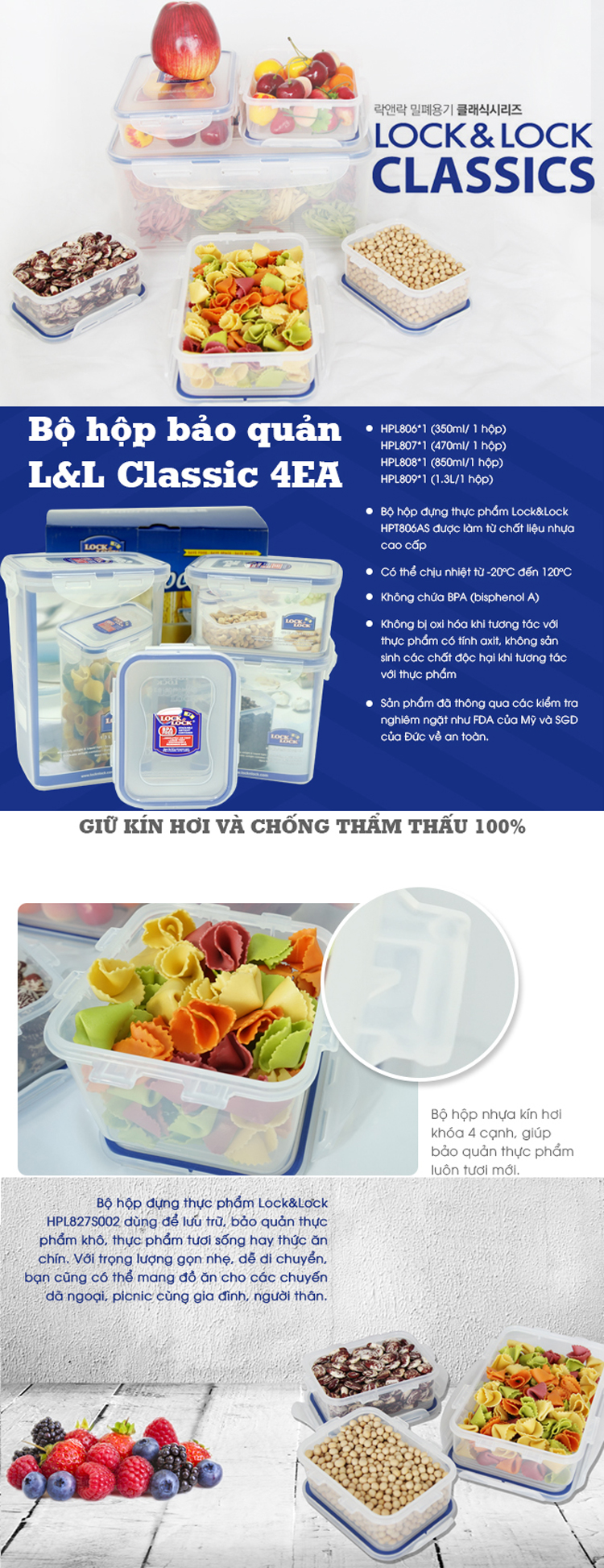 Bộ 4 Hộp Nhựa Đựng Thực Phẩm Lock&Lock Classic HPT806AS
