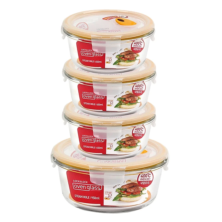 - Bộ 4 Hộp Thủy Tinh Hình Tròn Euro Steam Hole Lock&Lock LLG831TS4 có thiết kế gọn nhẹ, thích hợp dùng để đựng thức ăn đi học, đi làm hay dã ngoại...