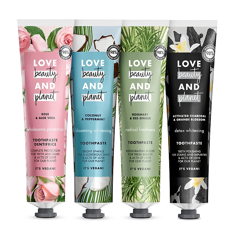 - Bộ 4 Kem Đánh Răng Love Beauty And Planet với các thành phần nguồn gốc từ thiên nhiên giúp lấy đi mảng bám và lưu giữ độ sáng bóng tự nhiên, để nụ cười của bạn thêm phần rạng rỡ.