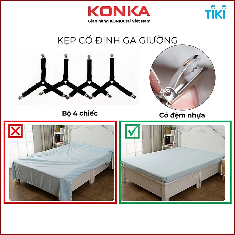 Bộ 4 kẹp ga giường drap chống xê dịch có đệm nhựa