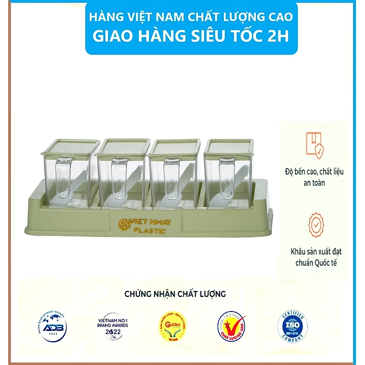 Bộ 4 Lọ Đựng Gia Vị Có Muỗng Nhựa Việt Nhật - Lọ Đựng Gia Vị Chất Liệu Nhựa PP An Toàn - Hàng Việt Nam