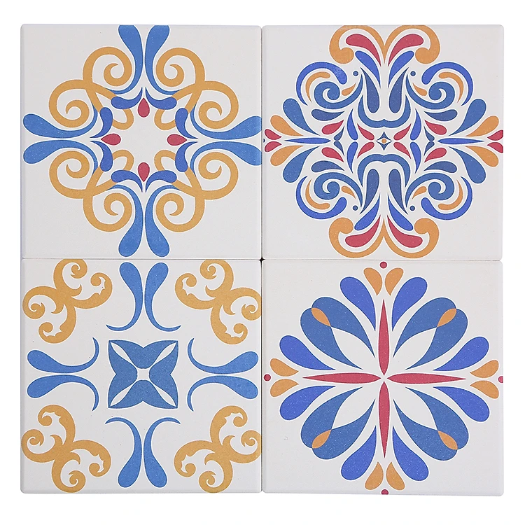 Bộ 4 Lót Ly Vuông - Gạch Hoa OPT1