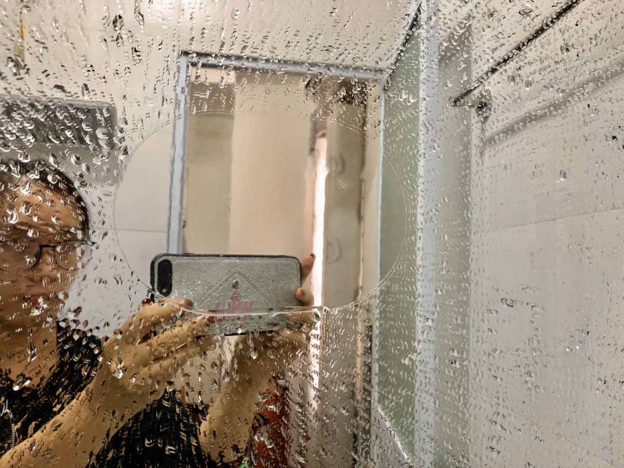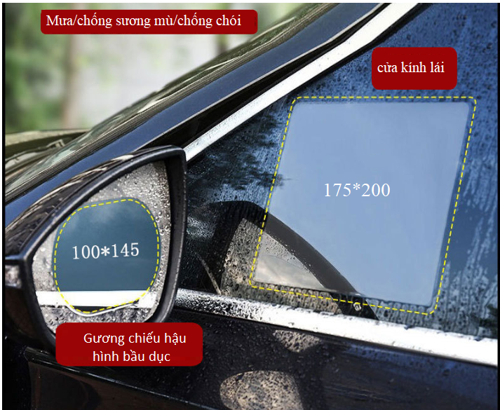 Bên dưới có ảnh shop tự dán lên gương sau đó xịt nước thì phần miếng dán không hề bị bám nước