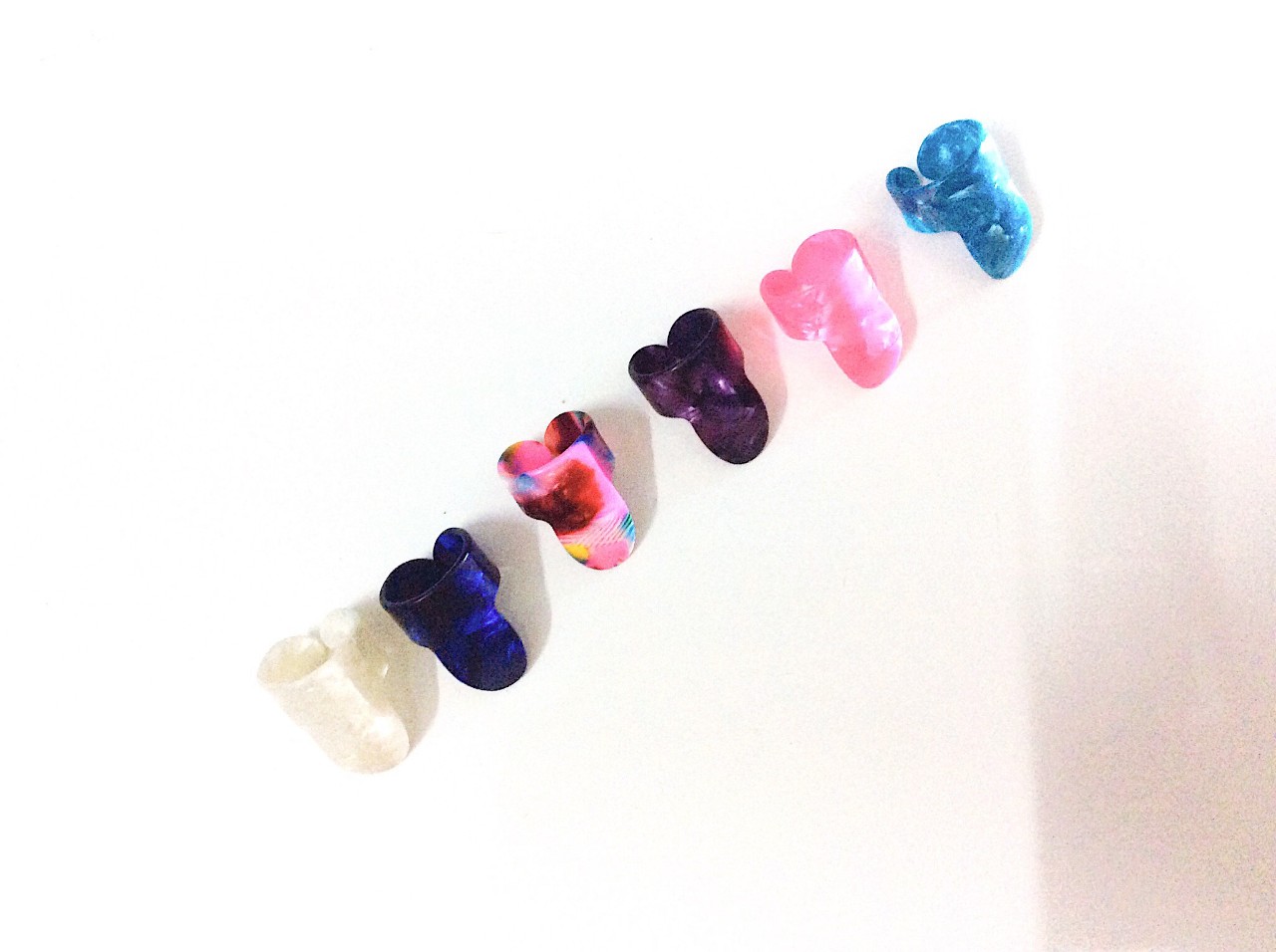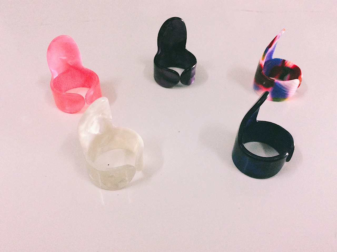 Pick xỏ ngón được làm bởi chất liệu nhựa tổng hợp . Pick cứng và dày giúp người chơi thực hiện các thao tác trên đàn dễ dàng