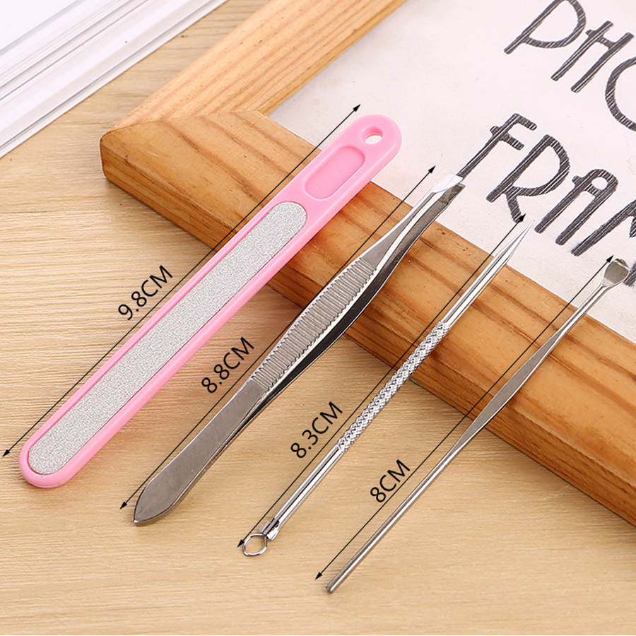 Bộ 4 Nhíp, Lấy Ráy Tai, Que Nặn Mụn, Dũa Móng Tay