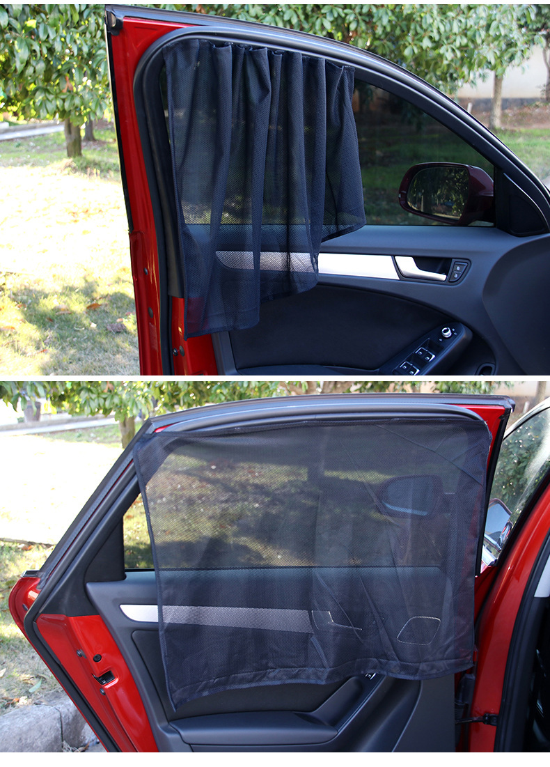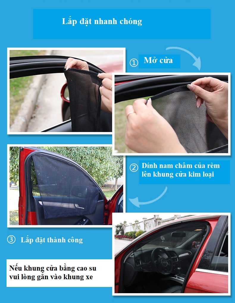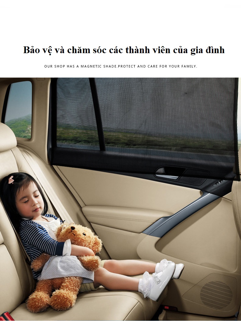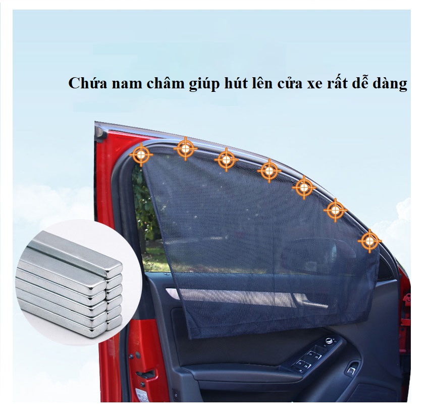 - Bộ rèm che nắng có nam châm giúp cố định miếng che nắng vào phía bên trong mặt cửa kính, thật tiện lợi khi bạn hạ kính xe mà không phải tháo rỡ miếng che nắng