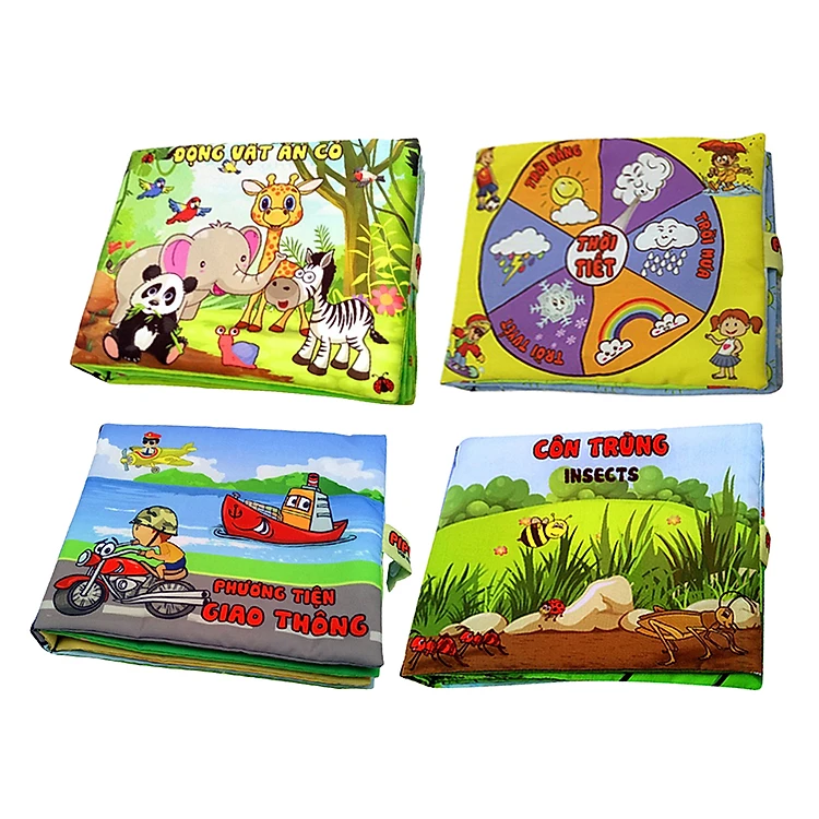 - Bộ 4 Sách Vải Pipovietnam (Giao Thông - Thời Tiết - Côn Trùng - Động Vật Ăn Cỏ) là bộ sản phẩm làm bằng chất liệu vải có chức năng như một đồ chơi lại có nhiều kiến thức cho bé học tập. Bộ sách vải an toàn này giúp bé tìm hiểu về chủ đề giao thông, thời tiết, côn trùng và các động vật ăn cỏ trong đời sống.